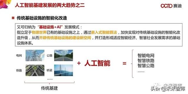 主要是指深度应用互联网、大数据、人工智能等技术,支撑传统基础设施转型升级,进而形成的 融合基础设施,比如,智能交通基础设施、(4.110, -0.03, -0.72%)基础设施等。