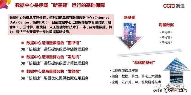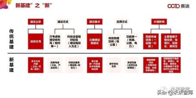 “新基建”是指以新发展理念为引领,以技术创新为驱动,以数据为核心,以信息网络为基础, 面向高质量发展需要,提供数字转型、智能升级、融合创新等服务的基础设施体系。