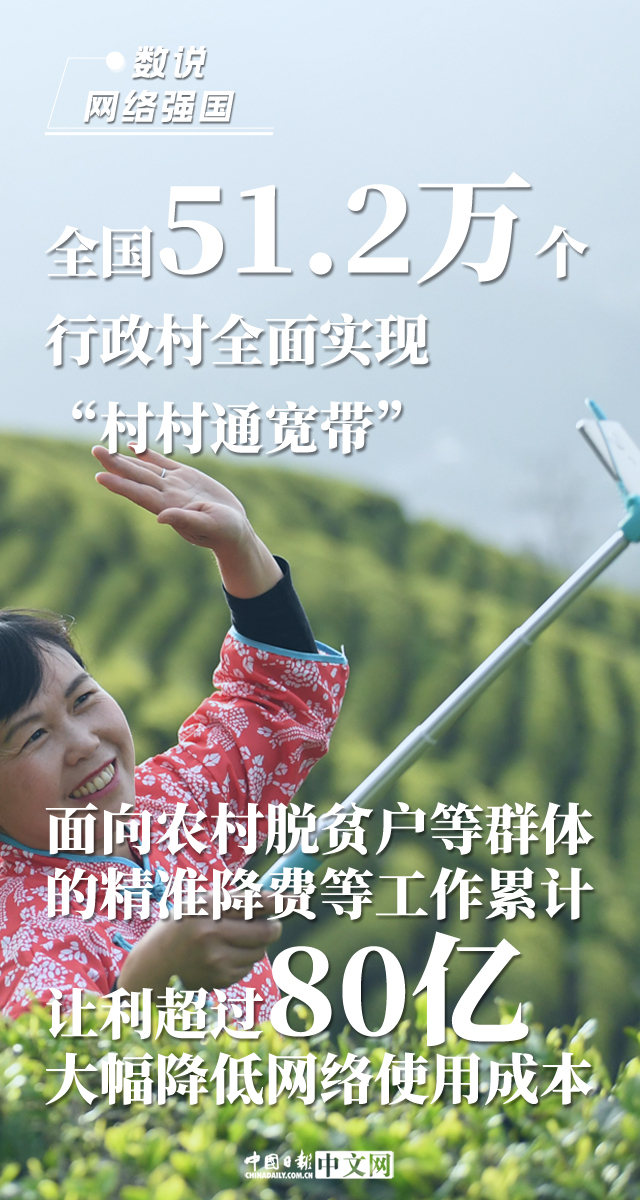 “让人民群众在信息化发展中有更多获得感、幸福感、安全感”,网络提速降费,取消手机国内长途漫游费、流量漫游费,村村通宽带……党的十八大以来,我国网信事业取得了历史性成就,人们的生产生活方式发生了深刻改变。一组组数据,见证了网络强国里的民生获得感。