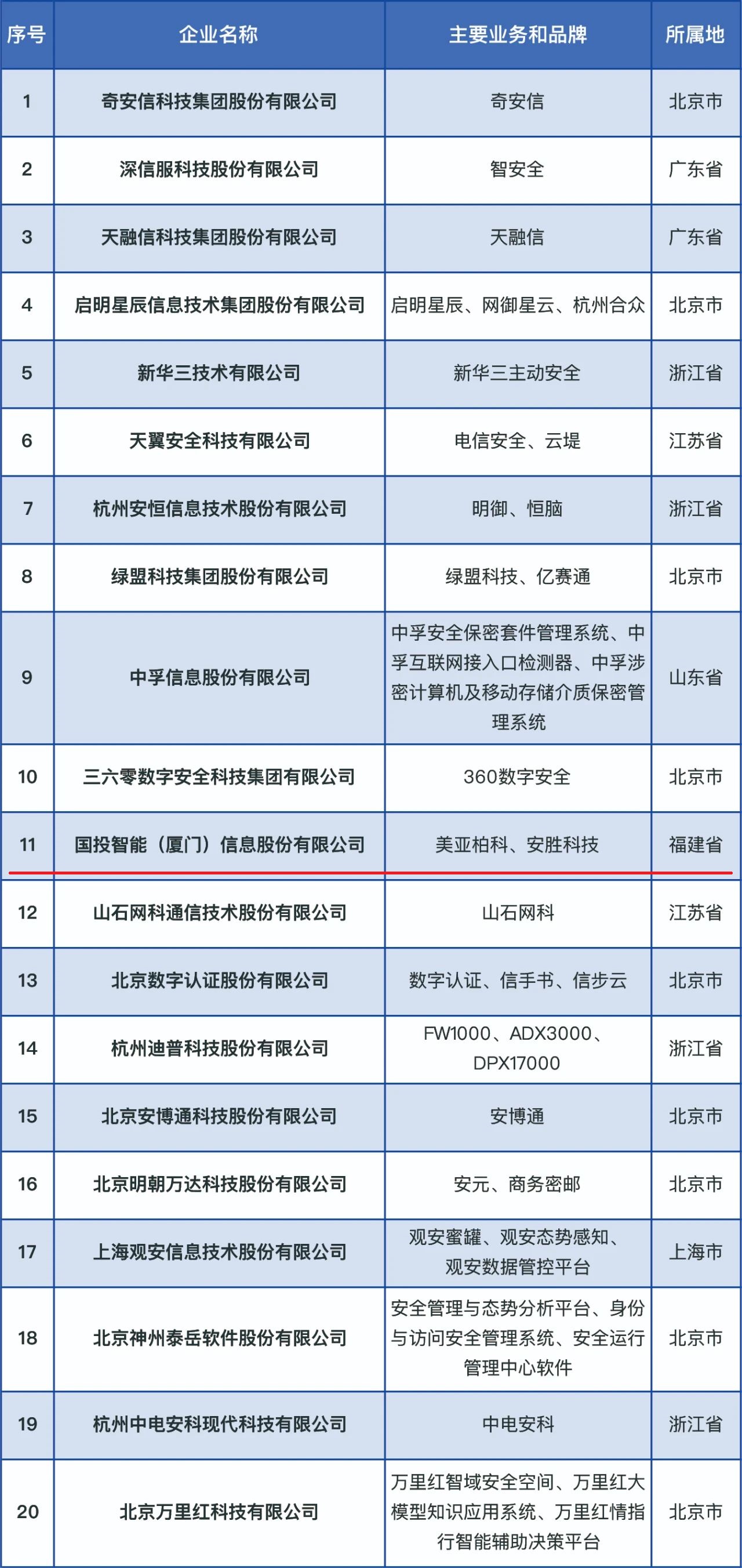 10月17日,中国互联网协会在厦门举办《中国互联网企业综合实力指数(2024)》发布会,会上发了2024年中国互联网综合实力前百家企业、2024年中国互联网成长型前二十家企业和2024年中国网络安全前二十家企业名单。福建省共有7家企业入选2024年中国互联网综合实力前百家企业名单,分别为美图公司、福建网龙计算机网络信息技术有限公司、四三九九网络股份有限公司、厦门吉比特网络技术股份有限公司、福建博思软件股份有限公司、福建游龙共创网络技术有限公司、厦门众联世纪股份有限公司;3家企业入选2024年中国互联网成长型前二十家企业名单,分别为诸云科技有限公司、厦门市唯云网络科技有限公司、厦门海豹云信息技术有限公司国投智能(厦门)信息股份有限公司入选2024年中国网络安全前二十家企业名单。